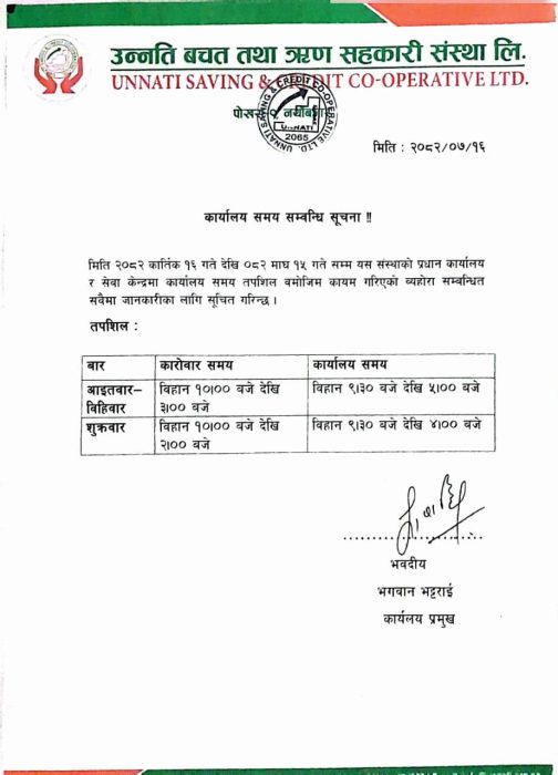 व्याजदर परिवर्तन सम्बन्धि सुचना